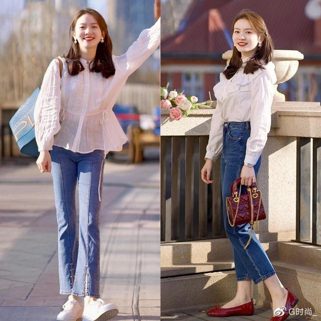 春季最不能错过的穿法,那一定是衬衣和牛仔裤的搭配了。衬衣原本就属于职场单品与休闲减龄的牛仔裤结合在一起,不仅能驾驭通勤风穿搭,在日常穿搭中也能帮你收获超高回头率。