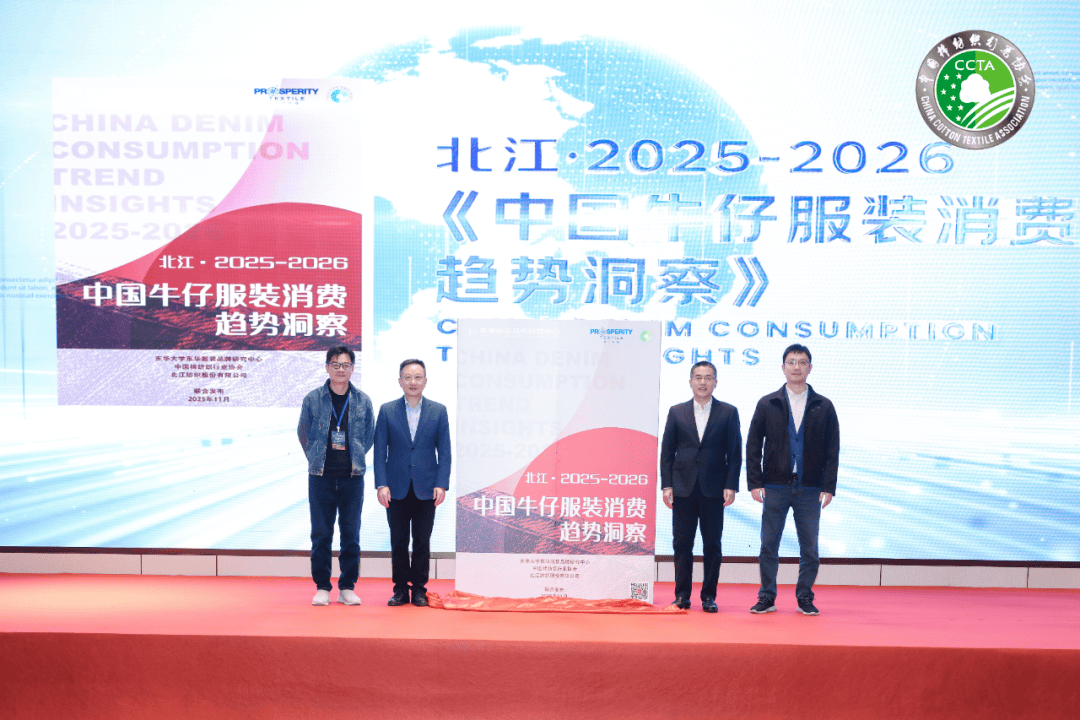 会上首次发布《北江·2025—2026年中国牛仔服装消费趋势洞察报告》,该报告是中国棉纺织行业协会携手北江纺织股份有限公司与东华大学东华服装品牌研究中心,聚焦中国牛仔服装消费趋势的重要研究成果。报告系统梳理了2025-2026年度中国牛仔服装消费的最新特点、场景分化趋势与需求升级方向,为上游牛仔布产业精准对接市场、优化产品研发、布局创新赛道提供了权威参考与科学指引,对推动行业从“面料供给”向“需求驱动”转型、实现高质量发展具有里程碑式的重要意义。