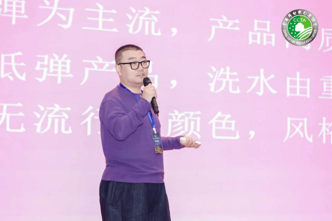 广州十三行是中国牛仔裤产业的时尚策源地与全球批销枢纽,中山市山水丹宁服饰扎根十三行多年,公司创始人牛栋从消费最新需求的角度介绍了对牛仔布面料的需求。他根据十三行26SS订货会的需求指出四面弹占比60%的市场同质化痛点,并指出面料是牛仔灵魂,颜色、风格、手感为核心竞争力。牛仔布厂需搭建整体研发系统,以稳定品质、充足备货破解快速市场变化难题。