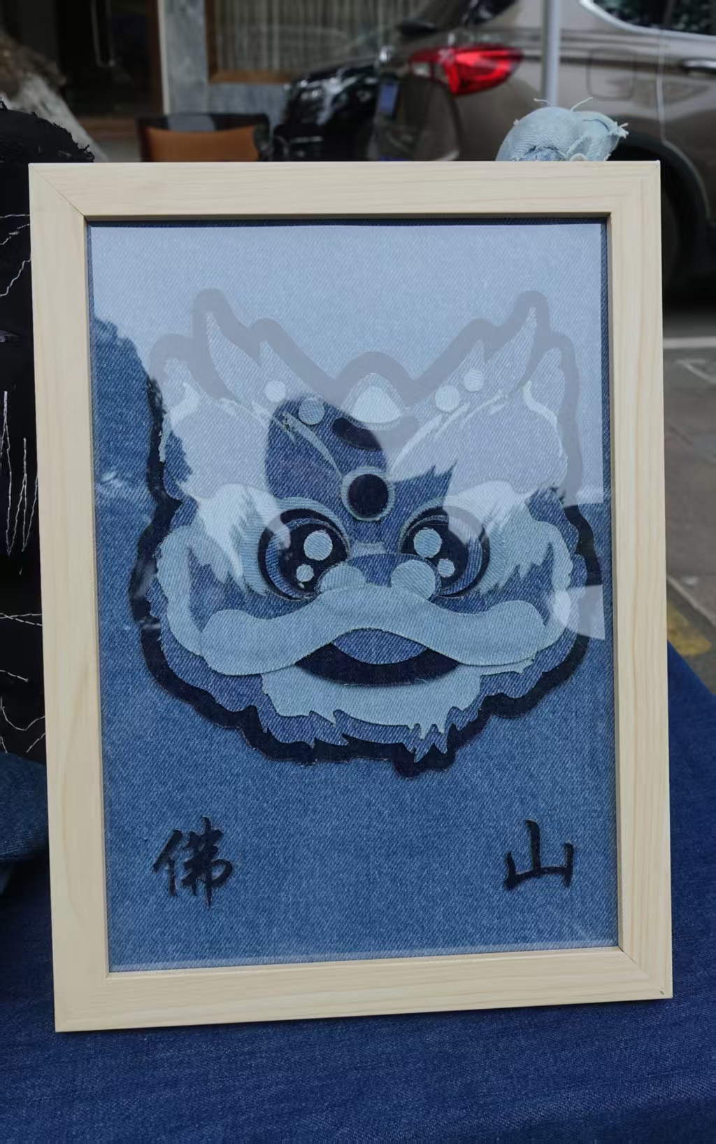 展品涵盖牛仔手袋、醒狮拼接画等实用类产品,以及牛仔帽、小饰品等穿搭配饰,设计上巧妙融合西樵牛仔面料与醒狮等本土文化元素,以简约随性的风格适配日常出行,既具实用性,又富含文化内涵。