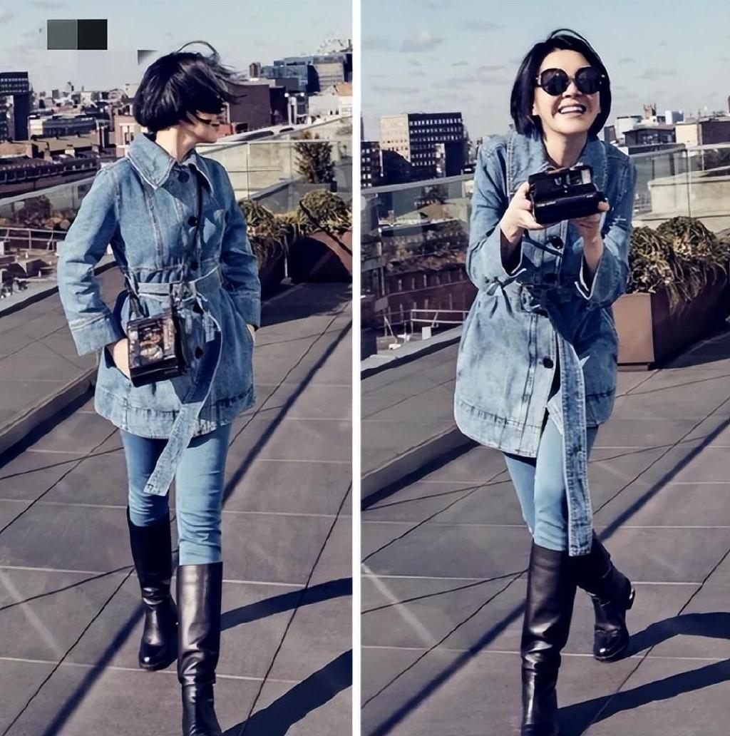 年过50的许晴,却仍然拥有完美身材!牛仔套装也穿出女人味