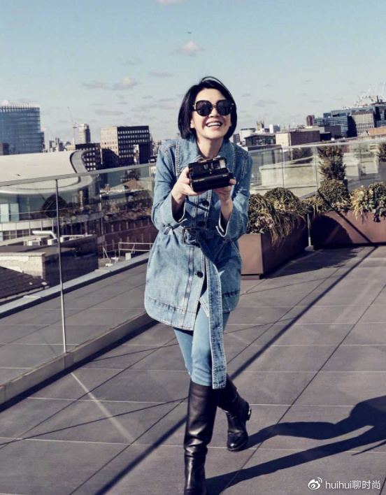 许晴还为牛仔套装搭配了长筒靴,气场较之前得到了明显提升。女性可以适度选择宽松式穿搭,这样可以遮蔽短处,扬长避短,展示自身休闲气质。