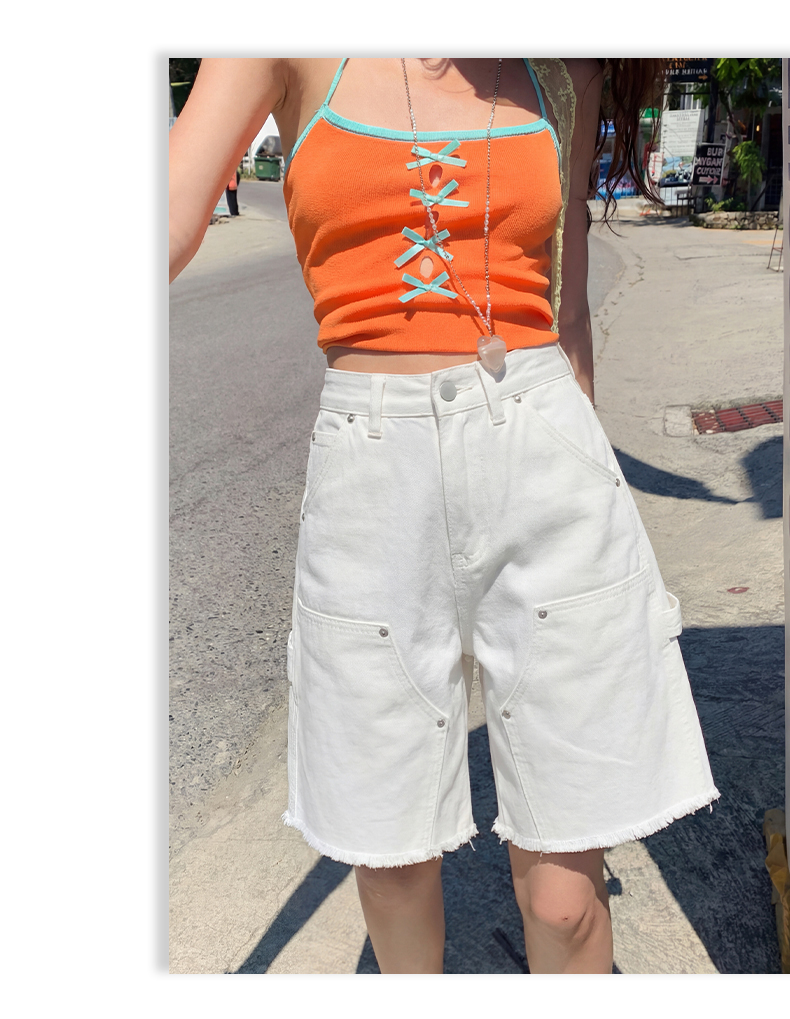 美式复古|小众设计铆钉|宽松直筒|五分牛仔裤女