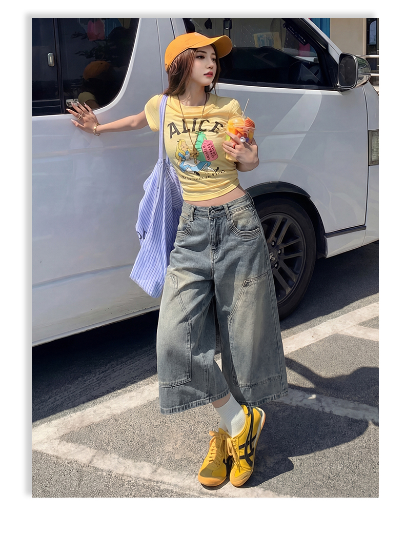 美式复古|做旧洗水工艺|宽松直筒七分牛仔裤女