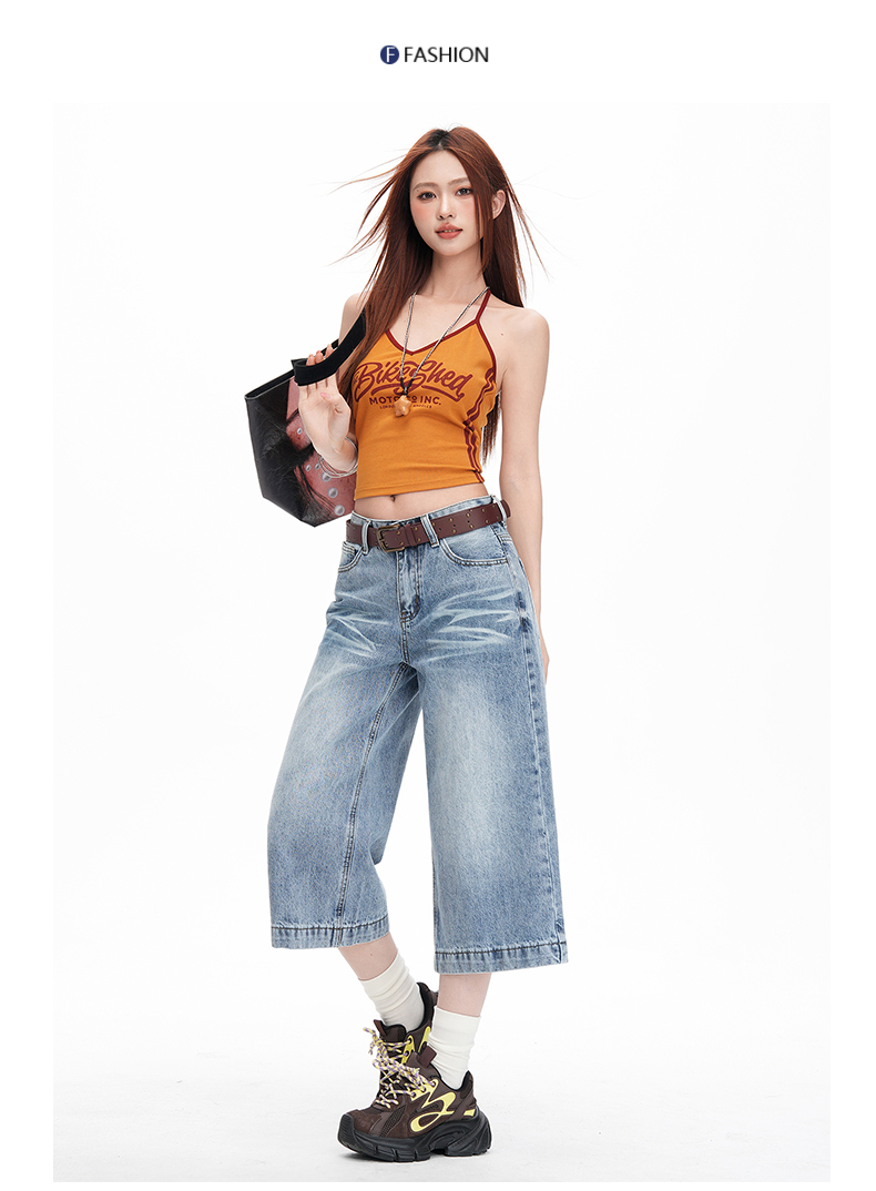 美式阔腿七分牛仔裤女2026年夏季现款宽松显瘦百搭直筒中裤