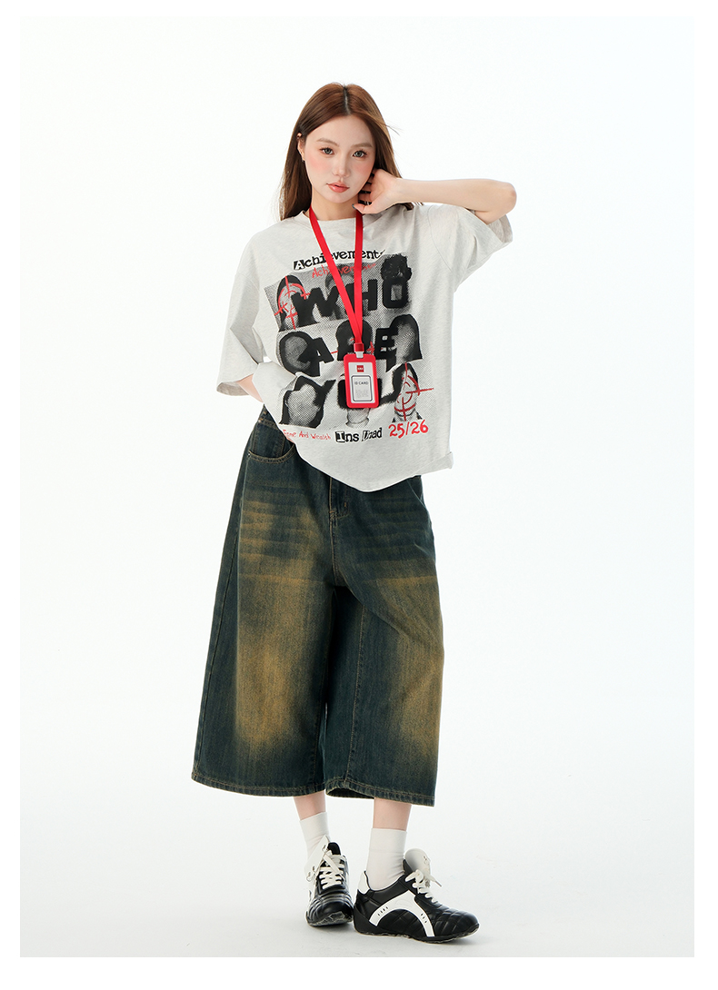美式高街复古阔腿七分中裤女2026夏季新款高腰显瘦宽松直筒短裤子