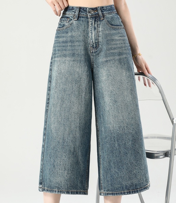 美式复古宽松阔腿裤高腰百搭垂感七分裤牛仔裤女